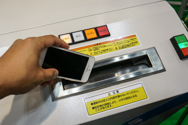 そこで、スマートフォンなどのデバイスも紙みたいにシュレッダーにかけられたら便利じゃない? という発想で作られたのが『マルチメディアクラッシャー MS-Z5』です。