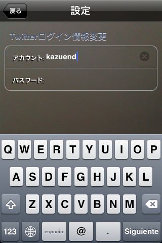 右上をタップすることで、この画面になり、設定でTwitterアカウントを入力します。
