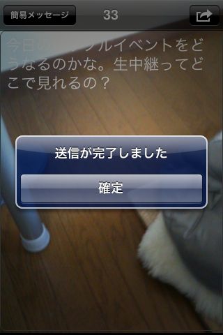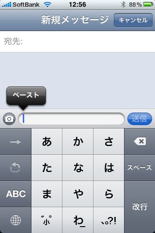 SMSをタップすると、アプリが終了しSMSアプリが立ち上がります。ダブルタップしペーストすることで、文章がペーストされます。