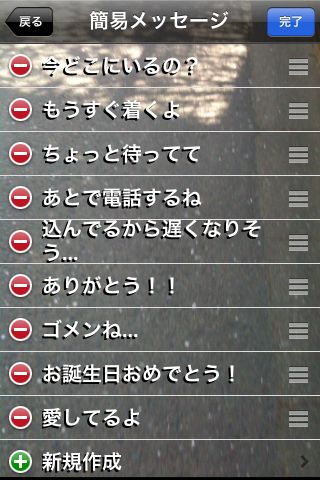 簡易メッセージを挿入することもできます。また新規で追加することもできます。