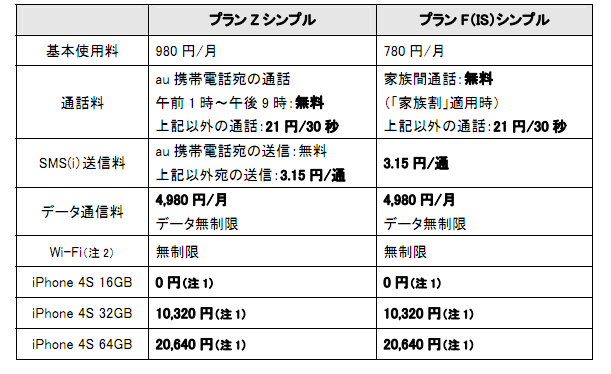 →au と SoftBank の iPhone 4S の料金プラン、本体価格、サービス(機能)比較