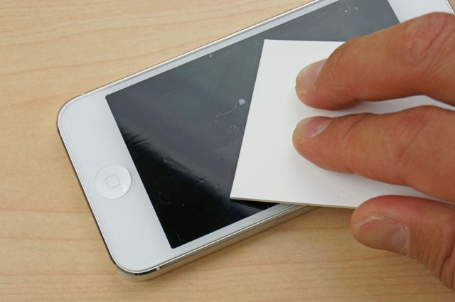 付属のヘラを使ってスススーッと表面を擦って気泡を押し出しながらシートを貼ります。
