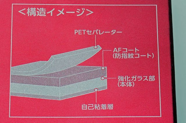 箱の背面の説明によれば、シートは3層構造で真ん中に強化ガラスが挟まれています。