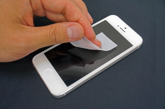 まずは付属のアルコールシートで画面の汚れをキレイにします。