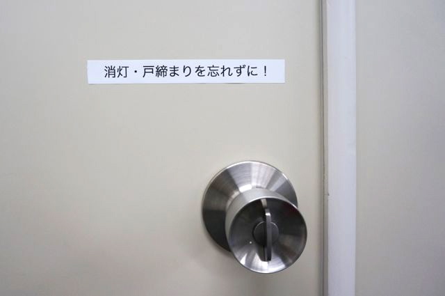 ドアノブの上にシールを貼って消灯をうながせば節電になるかもしれません。