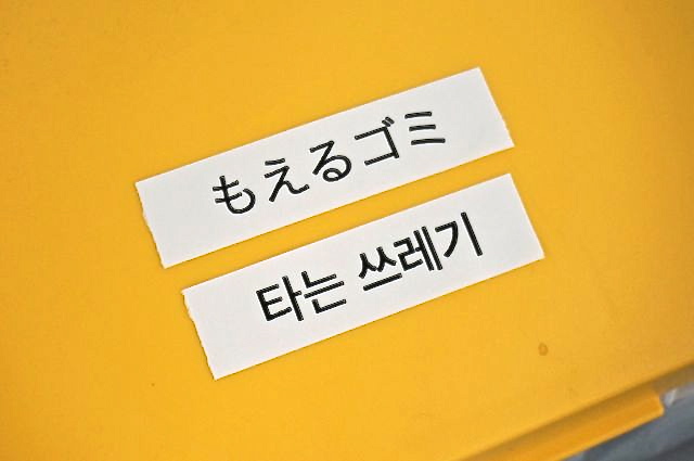 わずか3分程度で2ヵ国語対応のゴミ箱の完成です。