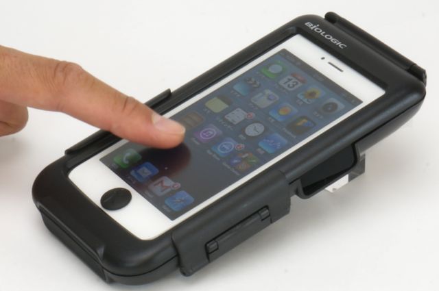 ケースの上からでもタッチの感度は良好。スリープボタンや端子類などは使用できなくなりますが、少々の雨などからはしっかり端末をガードすることが可能です。