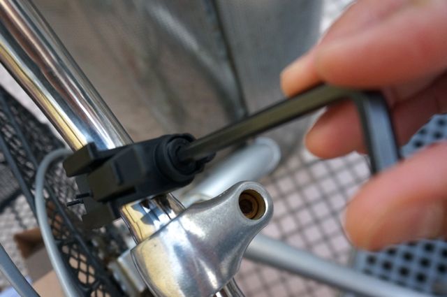 ロードバイクやマウンテンバイクなどにも取り付けできますが、今回はあえてシティサイクルでトライ。