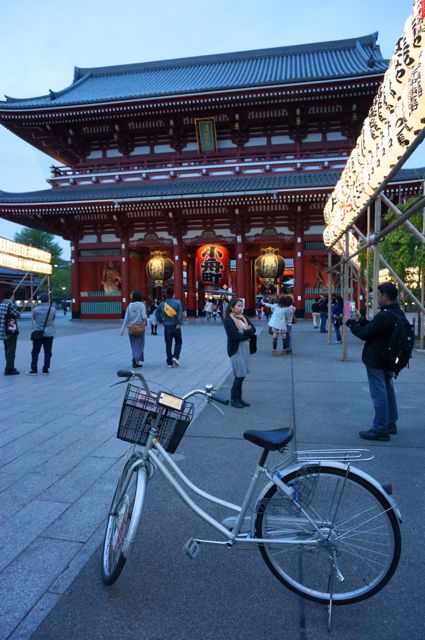 200円レンタル自転車に取り付けて浅草を走る