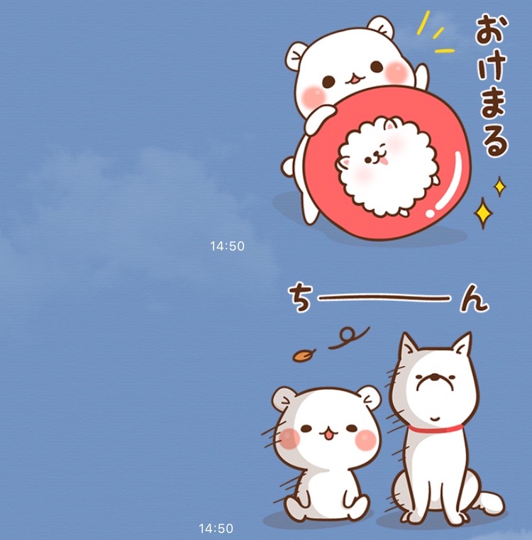 「おけまる」といった若者言葉のスタンプから「ちーーん」「ぺこーーっ」などリアクションスタンプが揃っていて、ササッと返したいときにぴったりのスタンプですよ。