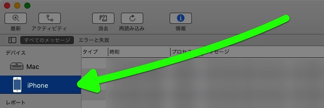 ウィンドウ左側の「デバイス」に表示されている【iPhone】をクリック。
