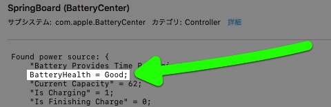 ウィンドウ下に、その項目の詳細が表示されます。その中にある「BatteryHealth」に注目してください。