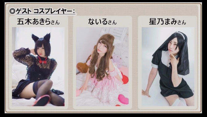 ▼ゲストコスプレイヤーは、五木あきらさん、ないるさん、星乃まみさん。