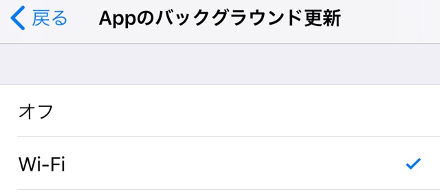 これでバックグラウンド更新そのものがオフになるか、Wi-Fi接続時に限ってバックグラウンド更新が機能するようになります。
