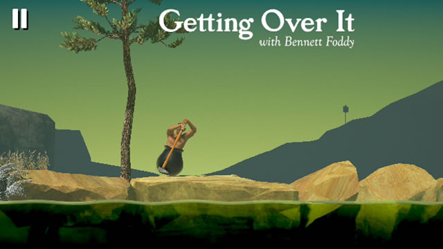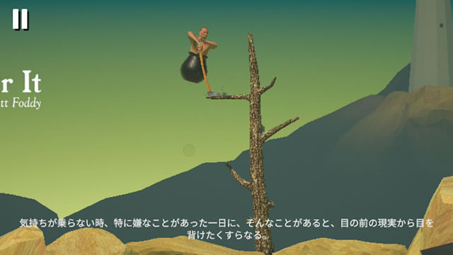 Getting Over Itは、なぜか分からないけど壺のなかに下半身が入っているおっさんが持っているハンマーを操作して、崖をひたすら登り続けるマゾゲーです。