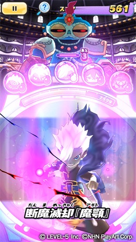 SSSランクの闇エンマのひっさつわざは超強力で、一定時間パズル部分をなぞると、妖怪ぷにをまとめて直線消しすることができます。