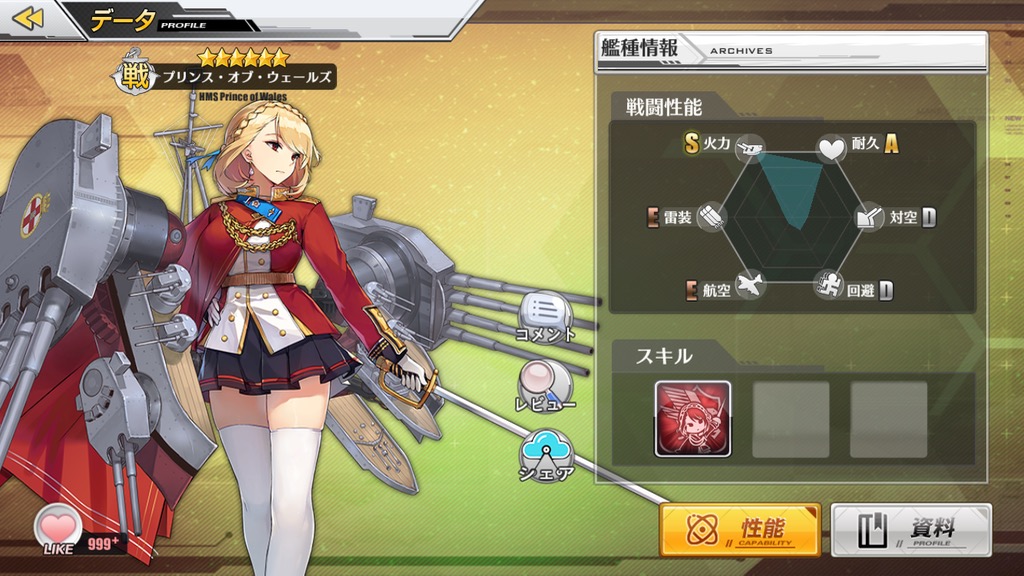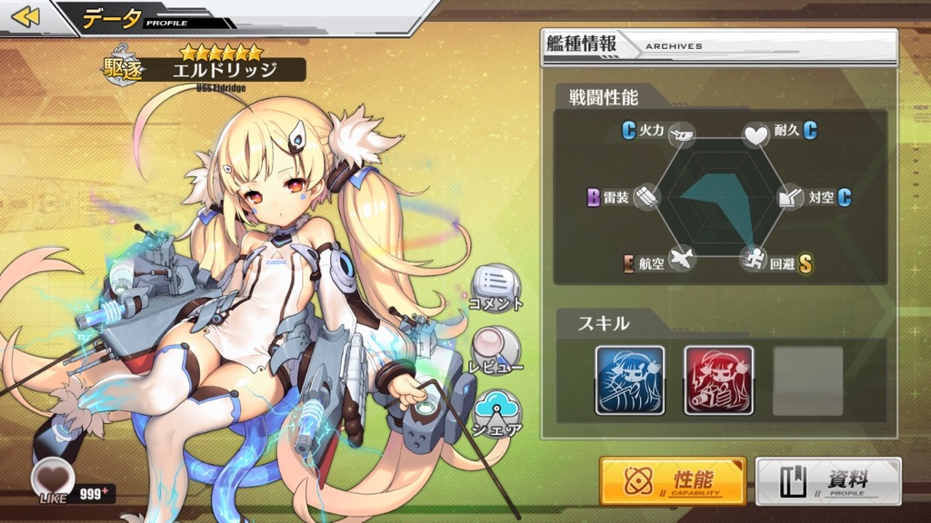 駆逐艦なので耐久は低いですがスキルで補えるのが強いポイント。移動速度が遅いこと以外は何の申し分もないキャラです。
