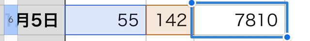 すると、一番下のセルに選択したセルの合計が表示されます。