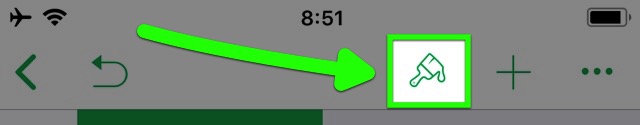 表・列・行・セルを選択してから、画面右上の刷毛ボタンをタップします。