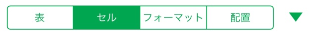 書式設定には【表】・【セル】・【フォーマット】・【配置】の4種類があります。よく使うのは【表】・【セル】・【フォーマット】です。