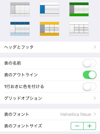 ヘッダは表の最初の行・列に設定でき、「固定表示」をオンにするとスクロールしても常に表示されます。フッタは表の1番下の行に設定できます。