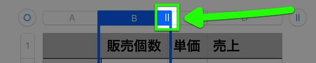 たとえばB列の幅を変えたいときは【B】をタップし、【B】の右にある【||】をドラッグしましょう。