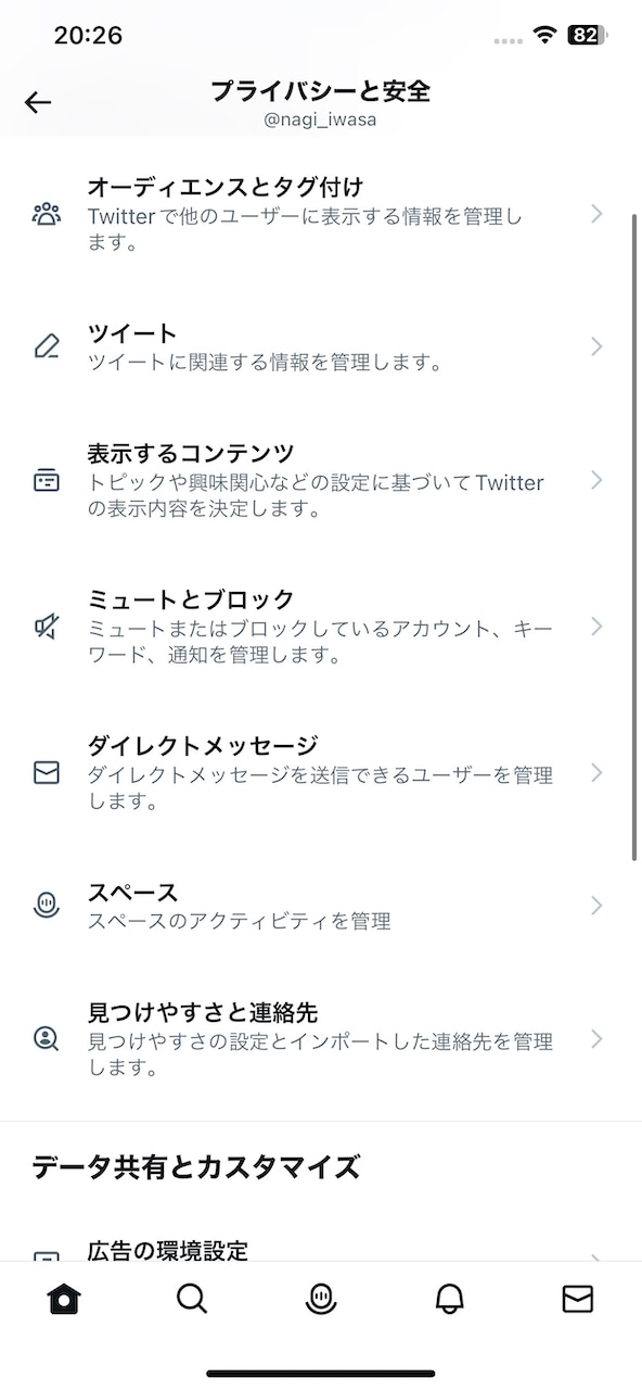 左上の自分のアイコンをタップし、【設定とプライバシー】→【プライバシーと安全】をタップします。