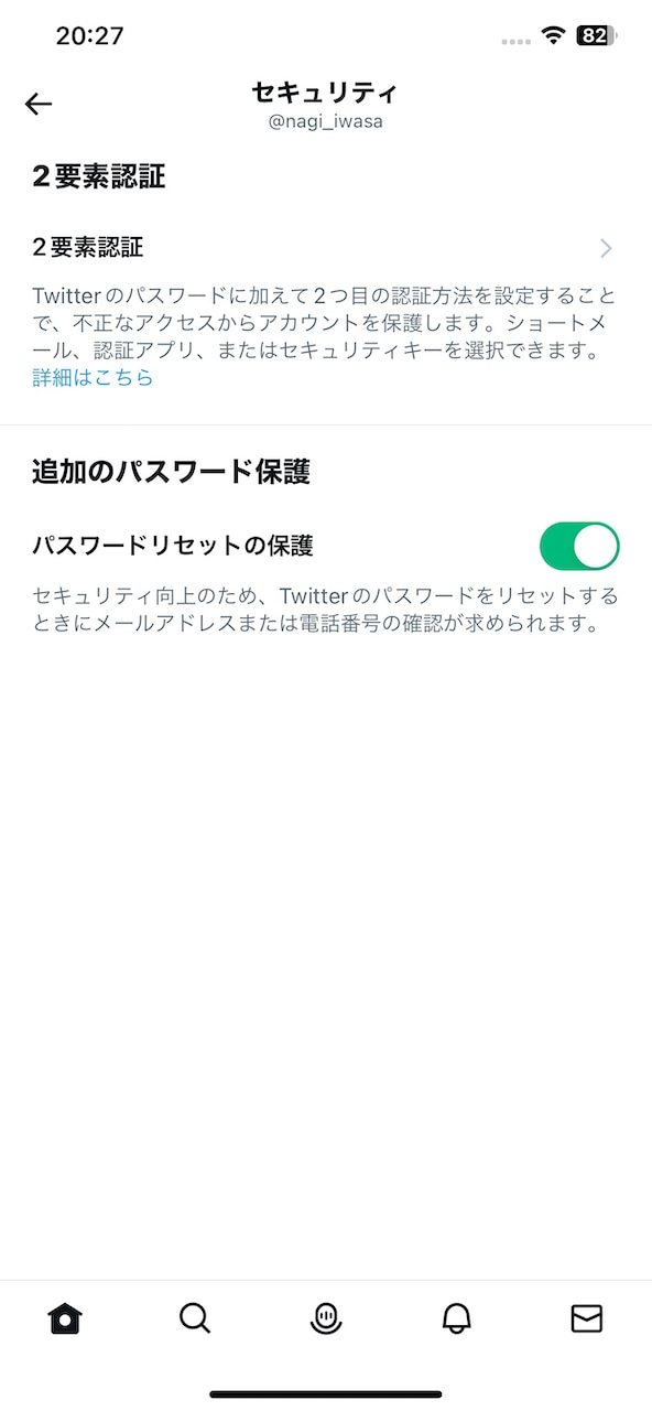 なおTwitterでは、電話番号による2要素認証が有料プランのTwitter Blue限定になりました。ただし、アカウント乗っ取りを防ぐためのパスワードリセットの保護は現状も有効なので、オンにしておくのがおすすめ。この項目は【設定とプライバシー】→【セキュリティとアカウントアクセス】→【セキュリティ】から変更可能です。
