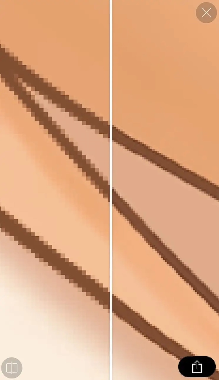 新機能「AI超解像度機能」は、ディープラーニングの技術を駆使し、自身が描いたイラスト作品の高画質化をワンタップで実現します。保存された画像の画質とサイズを2倍に向上させることができ、仕切りバーを使って適用前後の解像度の比較を容易に行うことができます。