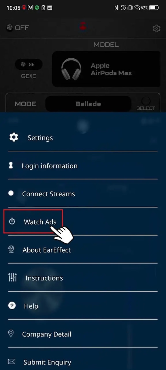 「EarEffect」は、イヤホン・ヘッドホンの音質を向上させるサウンドチューニングアプリで、今回のアップデートにより広告付きの無料プランが追加されました。広告を見ることで得られる報酬と共に、広告を「見貯める機能」も追加され、1回広告を見ることで10分間の無料使用が可能となりました。