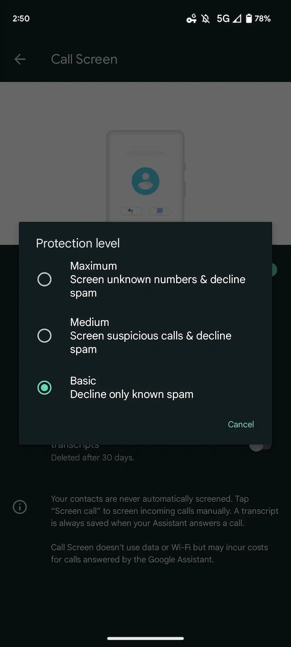このベータ版は、Googleが5月中旬に発表し、今日まで水面下でテストされていました。この通話アプリのベータ版で行われている変更の1つが「設定UIの更新」です。新しい「保護レベル」の設定は以下の3つに簡素化されています。