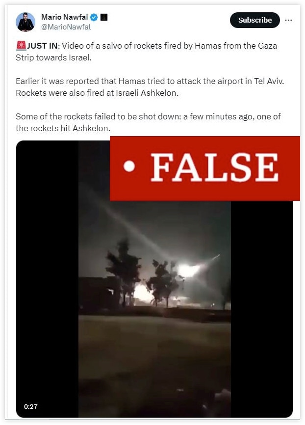 以下は「ハマスがイスラエルに向けて発射したロケット弾」「ハマス過激派の軍事車列がイスラエルのミサイルの標的にされている様子」としたフェイク投稿。実際はどちらもシリアで撮影され、2019年に投稿されたものです。