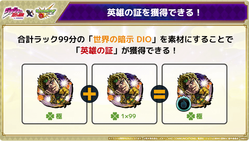 ・ディオを198体集め、運極+英雄の証を持った状態にする