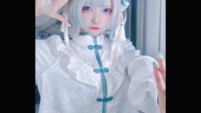青×白の中華服が清楚で可愛い! あのね。、シルバーヘアのチャイナガール姿を披露