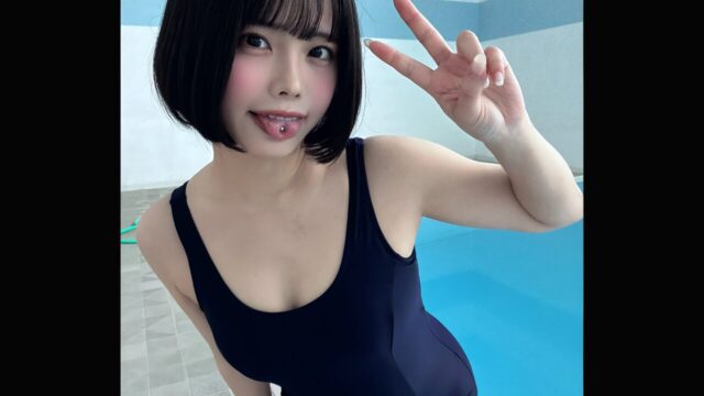 舌ピアスがキラリと光る! まめだいふく、ネイビースクール水着で「例のプール」を訪問