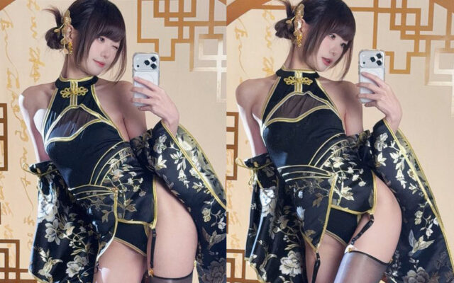艶めく黒の衣装に光沢タイツ! 牛牛Niuがセクシーなコスプレ姿を披露