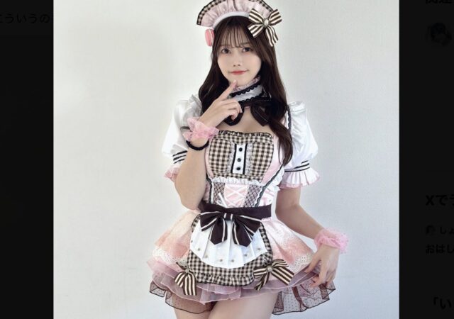キュートさが詰まった「マカロンメイド」! 桃里れあ、黒×ピンクチェックの推し活メイド服を披露