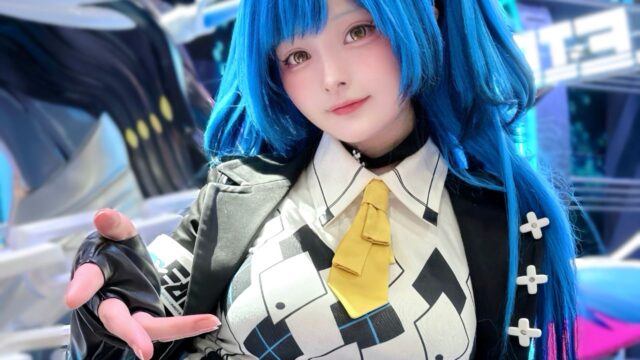 鮮やかなブルーが目を引く! すずら、『チェイシング・カレイドライダー』亜紀子のコスプレで東京ゲームショウ2025に登場