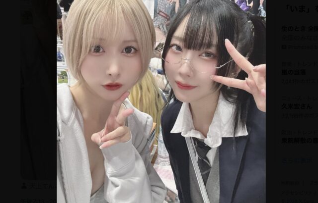 制服美少女との共演に大満足! 堕天ろあ、天上てんこさんとのツーショット撮影を報告