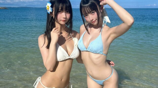 キュートすぎるコラボ! 犬乃かりんと雛なの、眩しすぎるビーチでの水着2ショットを公開