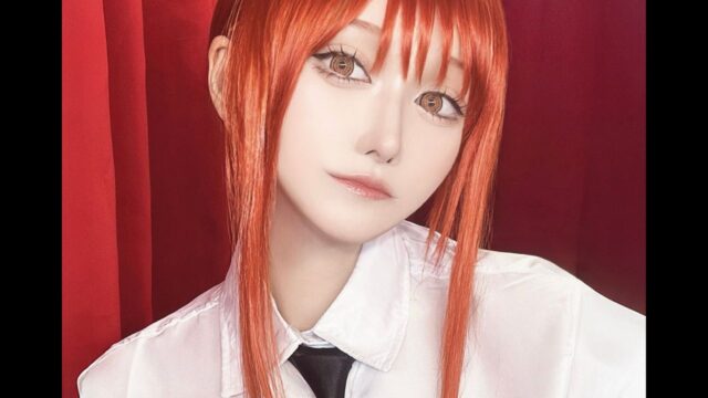また、赤い瞳のカラコンと自然な表情でキャラクターの雰囲気をそのまま現実に持ってきたような完成度の高さ。Vサインのポーズがキュートさをくわえています。