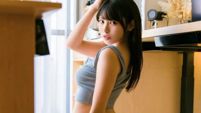 振り向き美人すぎる! 柑橘もこ、グレーのタンクトップ&下着姿で「目が合った。」と投稿