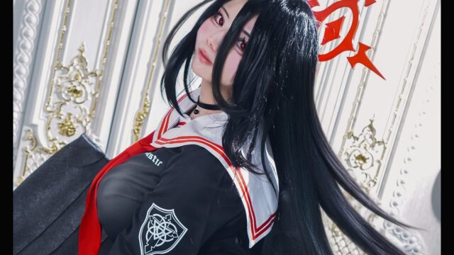 美しすぎる振り向きポーズ! 猫目さゆ、『ブルーアーカイブ』羽川ハスミの艶やかなコスプレを披露