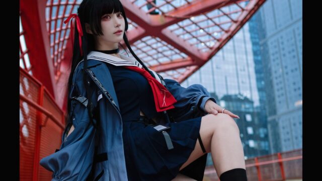 赤い格子の下で映える! 箱ネコ、『鳴潮』千咲の学生服コスプレ写真を公開
