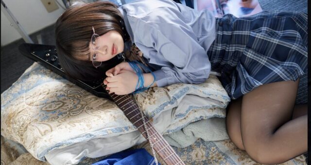 教室での一枚が最高! 月海つくね、千咲のコスプレで寝転がる姿を披露