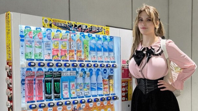 セクシーすぎる自販機ショット! ネトーチカ、ゴシックロリータ風コスプレで自販機との2ショットを披露
