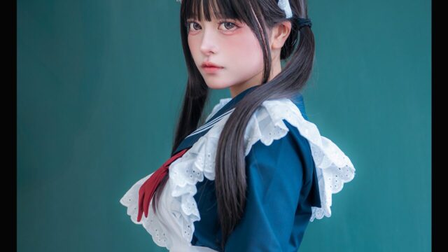 清楚すぎるセーラーメイド! 百莉ゆり、紺と白の組み合わせが美しいメイド服姿を披露