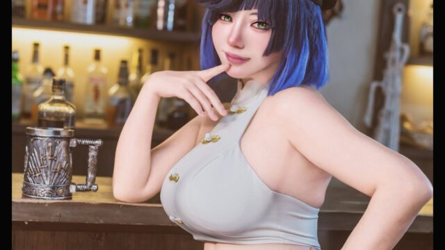バーカウンターでクールに決まる! ぬえ山ぬえっちゃ、『原神』夜蘭の色気あふれるコスプレを披露