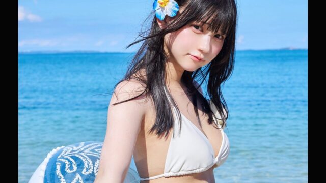 夏の魅力全開! 花雨、ダークブラウンの水着でセクシーな社員旅行スタイルを披露