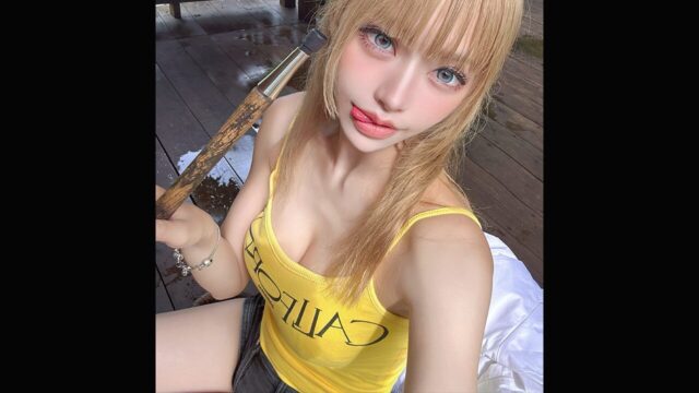 金髪ギャルの舌ぺろアピール! ネコノメ、黄色いタンクトップで大胆な自撮りを披露